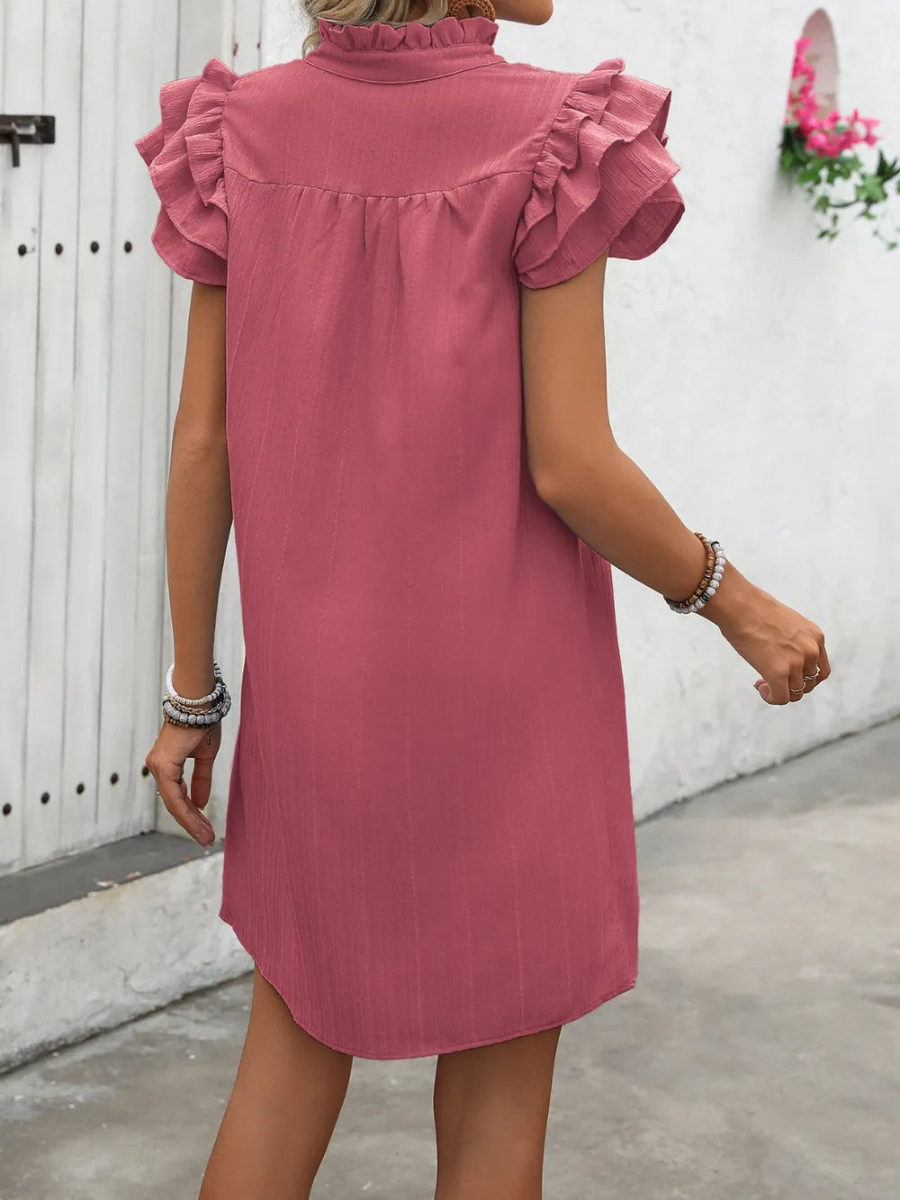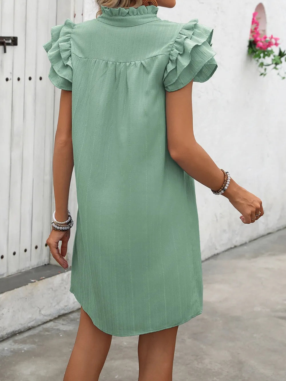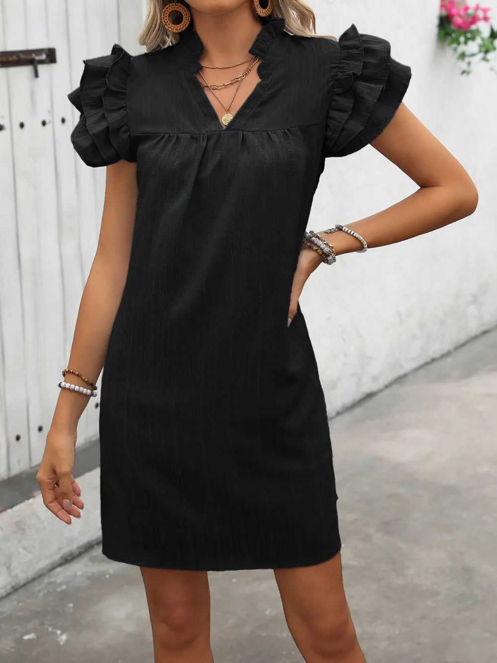 Ivy Lane Ruffled Notched Cap Sleeve Mini Dress