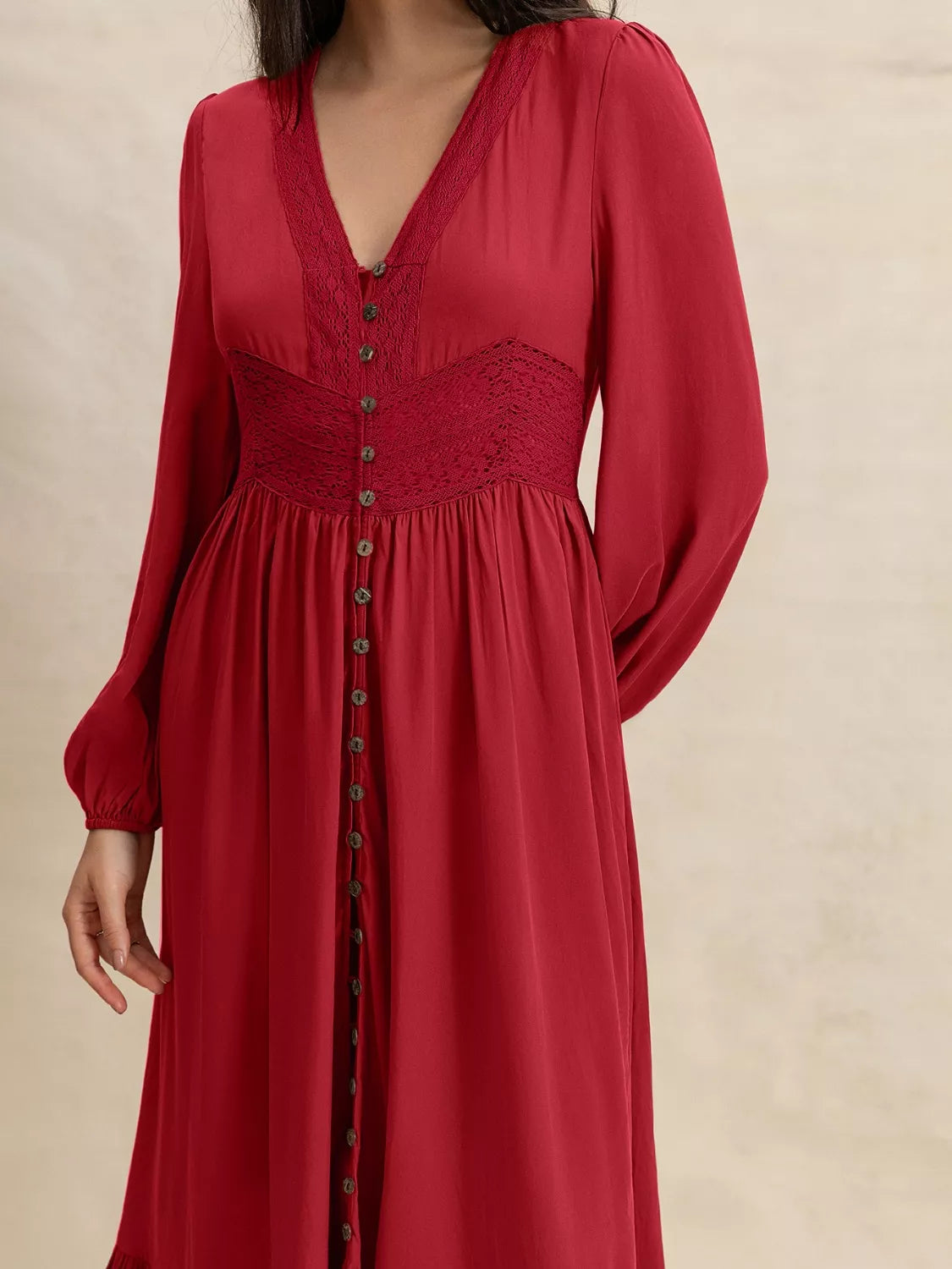 - Features:Buttoned,Ruched,Lace Detail
