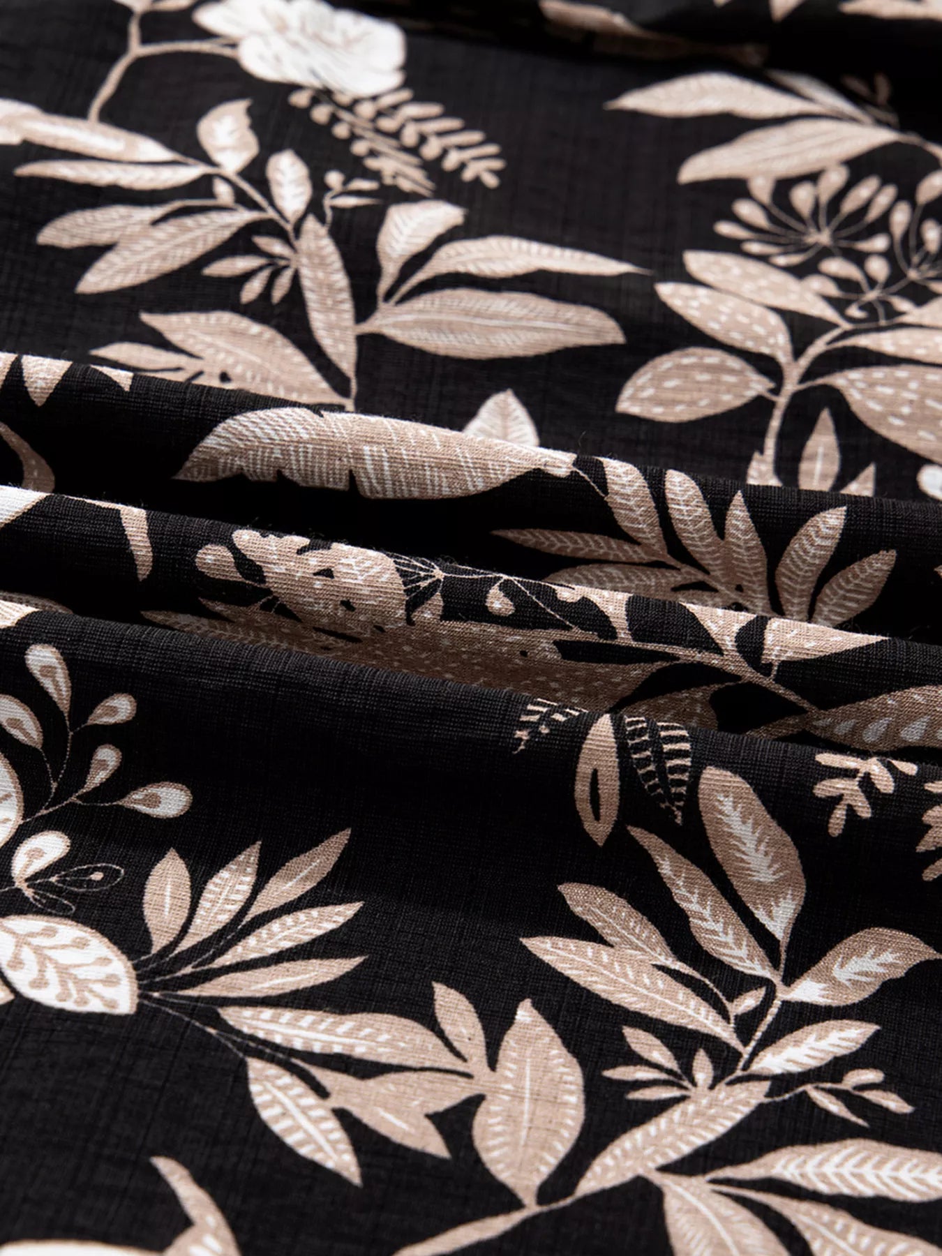 3/4 Sleeve Botanical Print Split Neck Loose Mini Dress